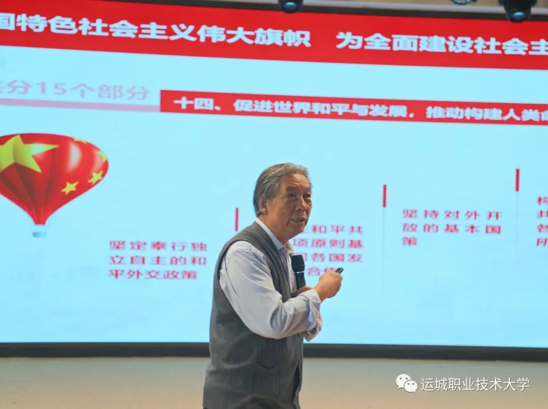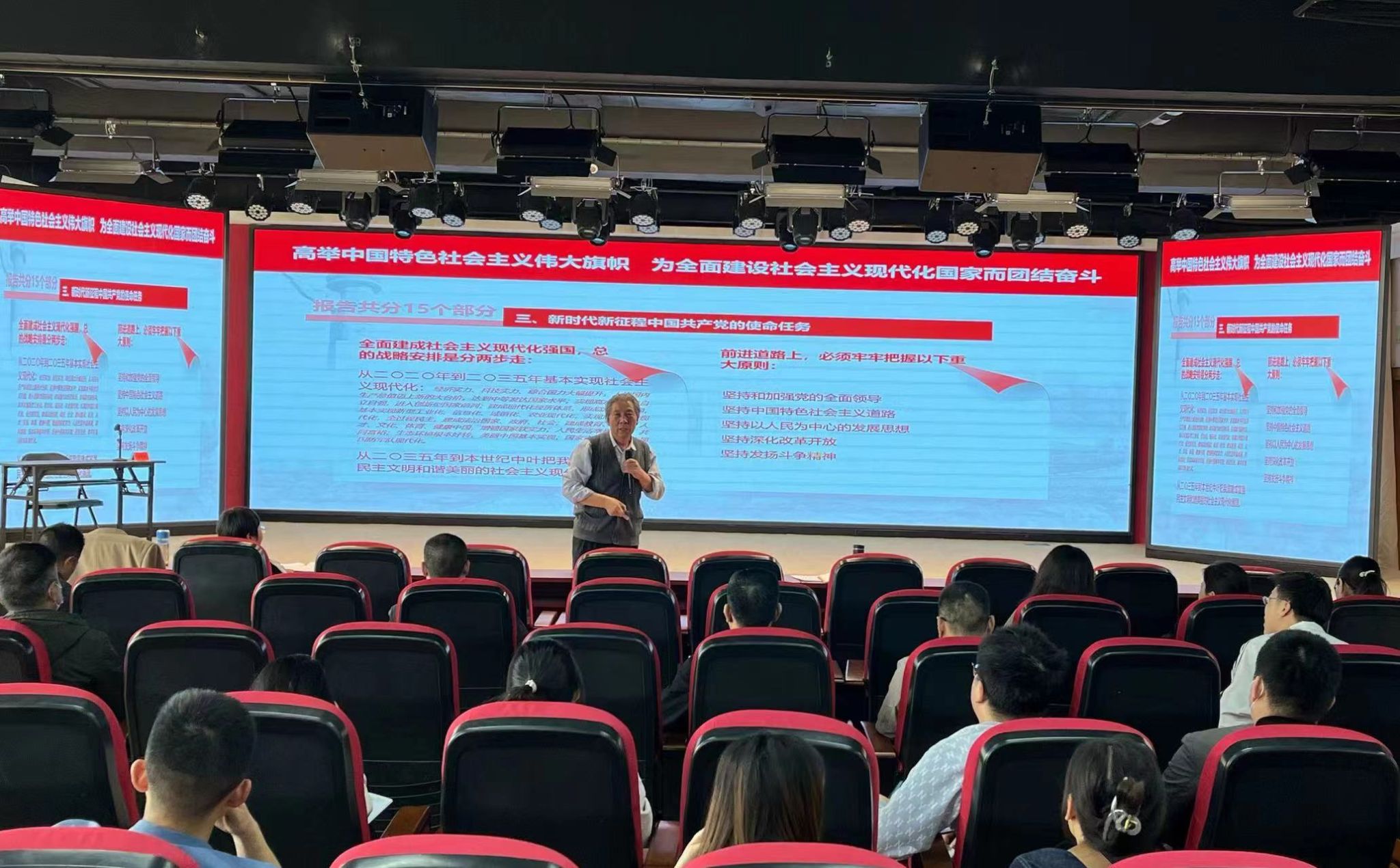 为深入学习贯彻党的二十大精神,推进党的二十大精神进教材、进课堂、进头脑,4月11日,教务处组织开展了“党的二十大精神进教材、进课程”专题会,特邀思政部主任王卓民主讲“二十大精神解读”。副校长吴超,校级在线精品课程和教材建设立项项目组成员参加会议,教务处韩道静主持会议。