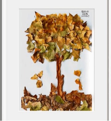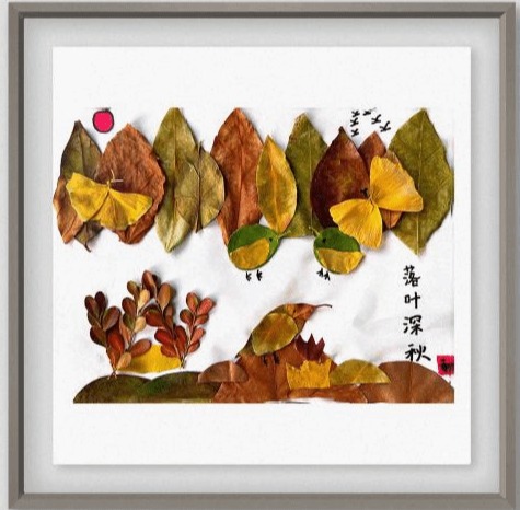 让我们一起来欣赏学生们在美育实践活动中完成的树叶拼贴画吧!