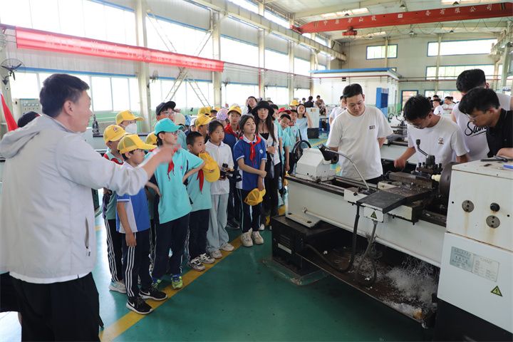 在工程实训中心,通过参观展示柜、车工实训区、数控机床实训区、钳工实训区、产品生产区等区域,提高了同学们的实践动手能力和创新意识。