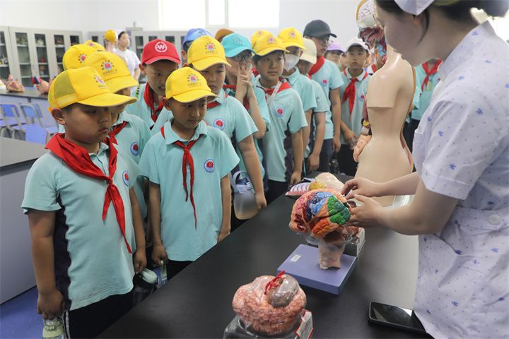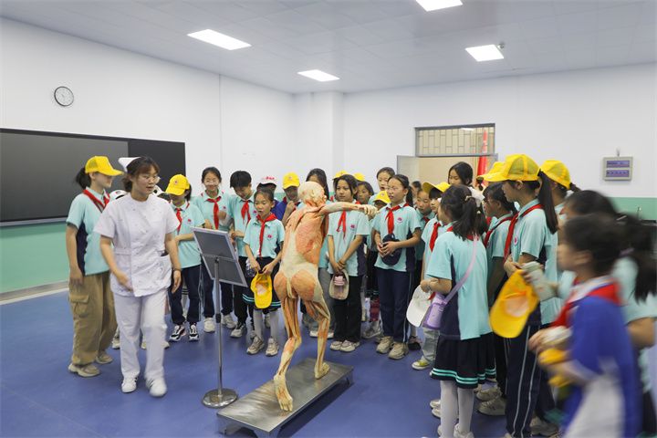 在健康学院生命科学解剖标本馆,同学们通过触摸的方式深入地了解人体神经系统、运动系统、呼吸系统、脉管系统以及消化系统、泌尿生殖系统等结构和功能,身临其境地感知人类生命的奥秘。