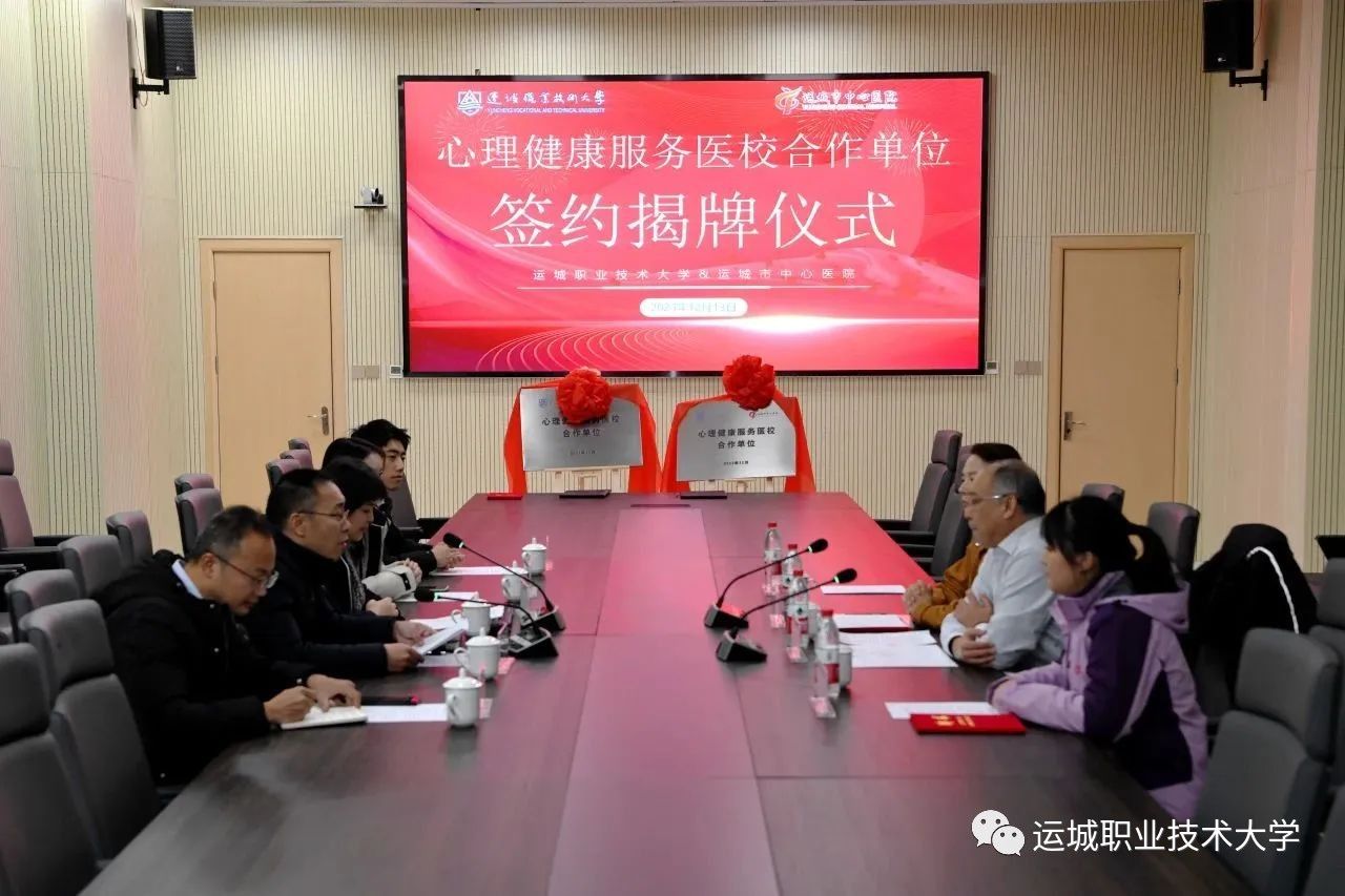 为进一步做好青少年心理健康教育工作,12月14日,运城市中心医院与bat365心理健康服务医校合作签约仪式在校图书馆一楼会议室举行。运城市中心医院权建文院长、临床心理科张瑾主任、范国亮医生、王昞丁医生,副校长刘怀瑞、心理发展中心主任闫红霞、智能学院副院长申蓓阳出席签约仪式。