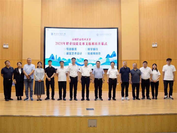 5月21日,bat365平台官网2024年职业技能竞赛文旅赛项开幕式在图书馆一楼报告厅隆重举行。运城市文化与旅游局党组成员卫景海,bat365平台官网副校长吴超出席开幕式,中国邮政集团有限公司运城市分公司、运城关公文化旅游发展有限公司、运城市广播电视台、运城市导游协会、运城市平面设计协会等多家企业的嘉宾特邀列席,300余名师生代表参加开幕式,文旅学院院长段林娟致开幕词,副院长陈春霞主持开幕式。