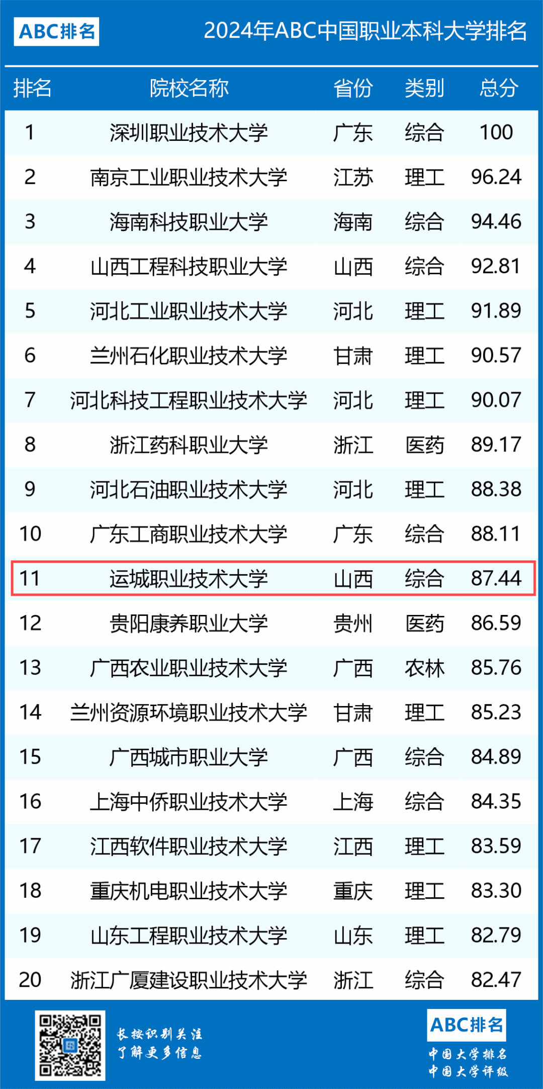 来源:2024年ABC中国职业本科大学排名,重磅发布