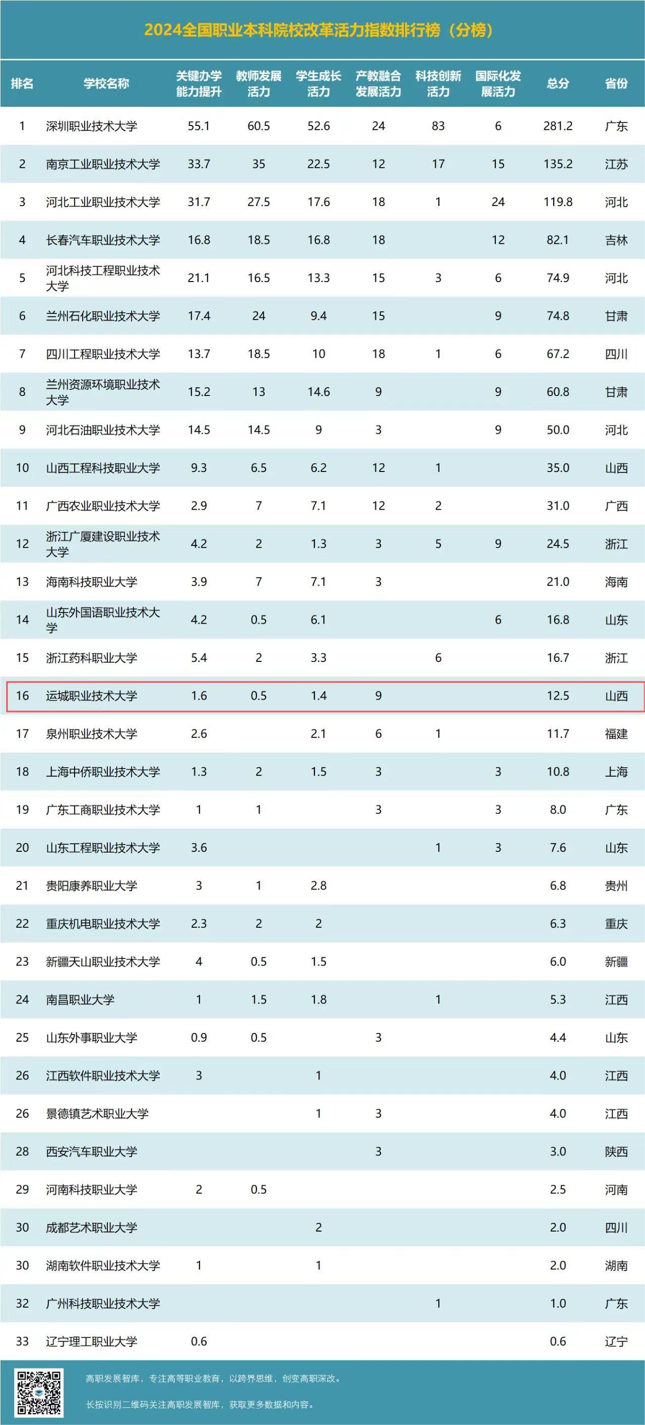 来源 | 高职发展智库:2024中国高等职业院校改革活力指数排行榜