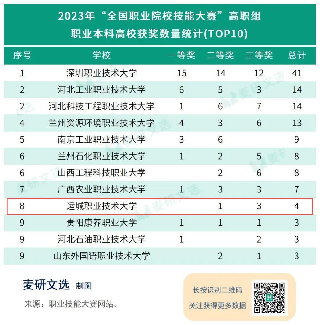 4月16日,2023年全国职业院校技能大赛获奖名单在大赛官网正式公示。bat365获奖数量位列职业本科高校第8。
