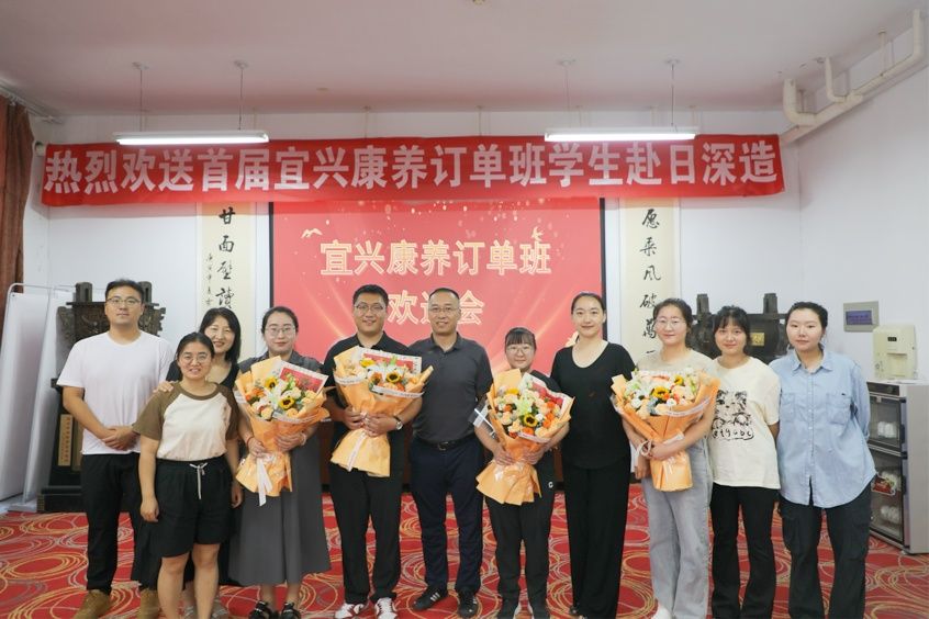 为了满足康养行业日益增长的人才需求,提升学校康养教育水平,促进学生的专业成长与就业,同时加强与宜兴康养领域的深度合作,学校于2023年组建宜兴康养订单班,同学们经历了日语等级考试、赴日工作面试等环节,圆满完成学业,准备赴日深造。6月25日,宜兴康养订单班首批赴日学生欢送会在1号教学楼举行。