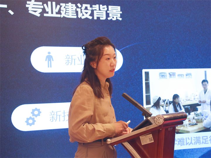 绵阳职业技术学院材料与建造学院副院长乔欢欢作《打造产教融合载体,推进职业教育材料类专业高质量发展》主题演讲。