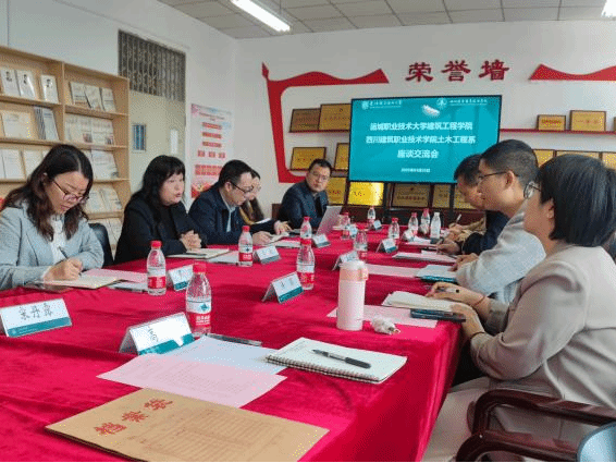 在四川建筑职业技术学院,双方就各自学校办学历史、专业设置、教师团队建设等进行了广泛交流,并与土木工程系教师团队就人才培养方案、课程标准、产教融合实施路径、实践教学模式等核心议题展开深入探讨。