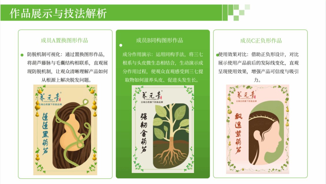 张璐老师的《图形创意》课程期中考核考核以“第17届大学生广告设计大赛图形创意主题创作”为主题,三人一组进行命题创作,全面考核主题图形、设计元素运用、视觉开发、创新能力、思路阐述及团队协作等多方面。