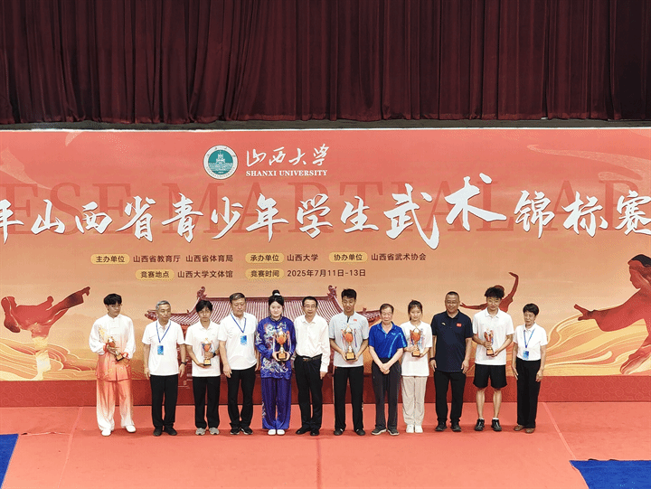 7月11日至13日,由山西省教育厅、山西省体育局主办,山西大学承办的2025年山西省青少年学生武术锦标赛在山西大学体育馆隆重举行。来自全省43所大中学校的近500名运动员同台竞技。bat365武术队5名健儿出战大学B组,以5金2银1铜1个第四名、团体总分第三的佳绩闪耀赛场。