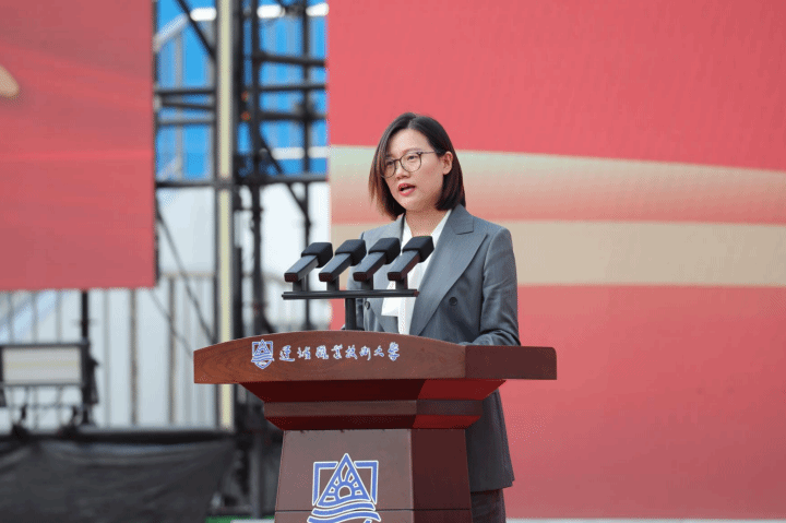 副校长畅明代表学校,向圆满完成军训任务的全体新同学表示热烈的祝贺,向辛勤付出的教官们致以崇高的敬意,向全程陪伴的老师和后勤保障人员表示衷心的感谢。