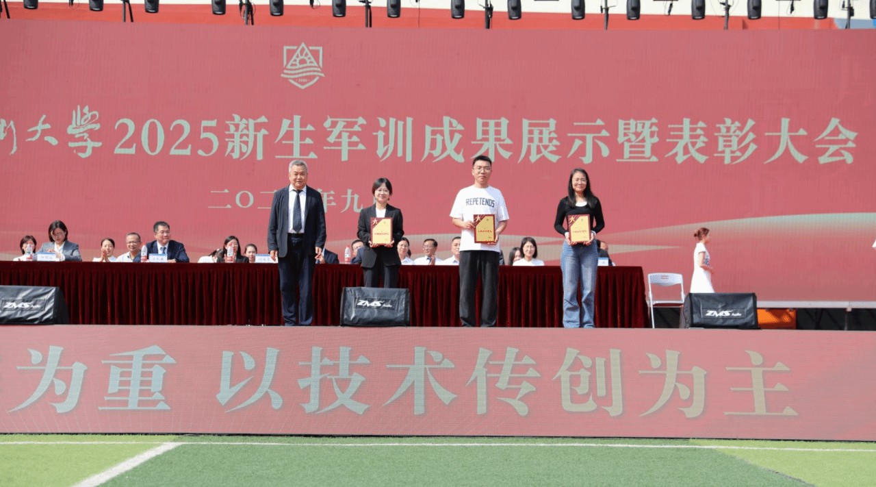 9月30日,bat365隆重举行2025级新生军训成果展示暨表彰大会。承训单位代表、中层及以上管理服务人员、全体2025级新生参加大会。