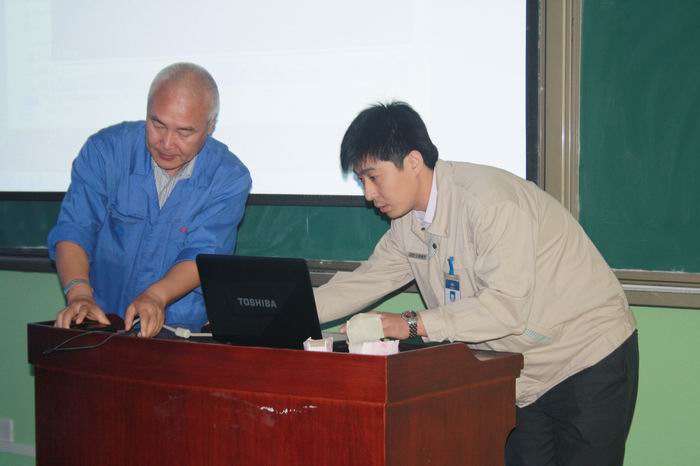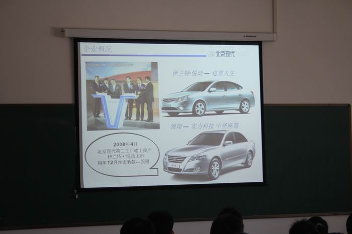 20日中午,汽车工程系大一“汽车制造与装配”专业师生,以及机电工程系09级“机械制造”专业师生,分别与企业负责人进行了详细专场交流。北京现代公司黄建辉工程师分别讲解了汽车制造装配的详细流程、北京现代公司的发展现状及员工的生产生活状况,并与师生进行了对 话交流。