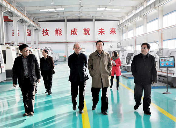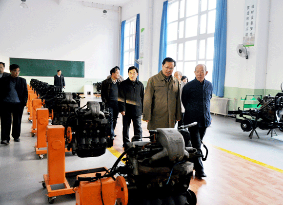 王厅长依次在学院大门、沙盘前、汽车实训中心、矿山工程实训中心、金工数控实训中心进行了参观考察。杨宗礼书记向王厅长详细汇报了学院的建设现状、设备投资、发展规划和师资力量等情况,王厅长听后一一点头表示肯定。在谈及我院即将努力建设成为山西省采矿、汽车、印刷、数控四大实训基地时,王厅长啧啧称赞。