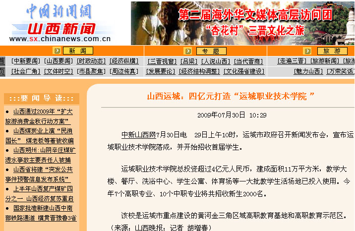 上一条:山西新闻网报道:4亿元打造高等职业技术学院