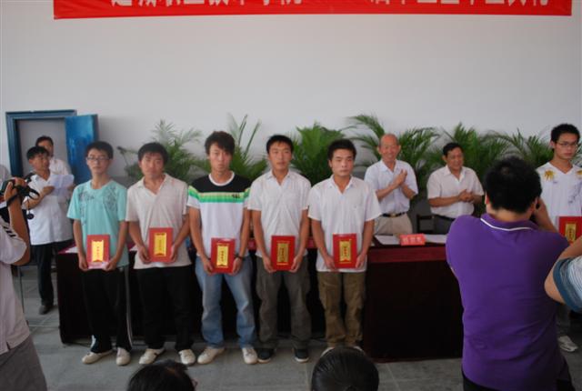 杨宗礼院长(左)、马长江董事长(右)分别为毕业生颁发毕业证和就业报到证