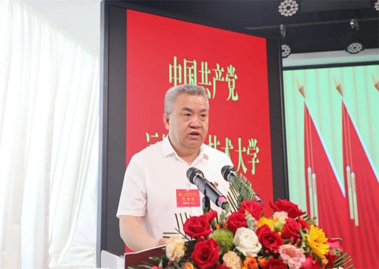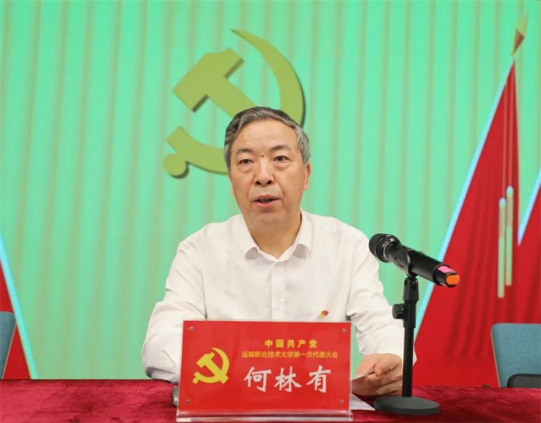 省委教育工委副书记、省教育厅党组成员何林有代表省委教育工委、省教育厅向大会的召开表示热烈的祝贺。他充分肯定了过去五年来校党委在人才培养、科学研究、社会服务、党的建设、思想政治工作和精神文明建设等各方面取得的优异成绩。对开好这次大会他提出四点意见:一要把这次会议开成开辟党建工作新境界的大会,站在全面从严治党的战略高度,站在为中国特色社会主义事业培养合格建设者和可靠接班人的高度,通过卓有成效的党建工作,为学校深化改革、推动发展提供坚强的领导核心和政治保证。二要把这次会议开成谋篇布局奠基未来的大会,全面总结成绩和经验,深刻分析当前面临的形势和机遇,精心描绘未来发展蓝图,为学校今后的改革、发展和稳定,奠定更加坚实的基础,创造更为有利的条件。三要把这次会议开成全面提升学校办学质量的大会,努力在党的建设、专业建设、课程建设,以及理实一体化教学、产学研深度融合、三大素养全面提升等方面寻找突破,适应新时代职业本科教育发展要求,着力推动学校内涵建设,实现高质量发展。四要把这次会议开成发扬民主凝聚合力的大会,在全体党员和广大师生中凝聚起一股强大的发展合力,不辱使命、同心同德,团结奋进、共谋发展,豪情满怀迈向新的征程。