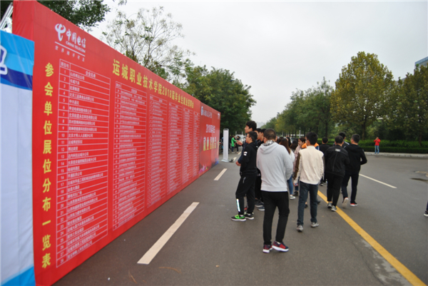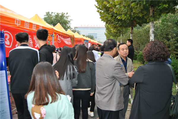10月12日,我院2018届毕业生就业招聘会在学院长江大道举行。宏源煤业集团、山西诺维兰集团、大运汽车股份有限公司、山西建龙实业有限公司、太原六味斋集团、山西阳光焦化集团、美特好物流配送中心、今麦郎饮品股份有限公司、金鑫大酒店、建国饭店等182家企事业单位参会,提供岗位2000余个,需求人数8000余人。我院大三学生2400人参会。通过洽谈共达成意向学生1860人,企业和系部积极对接,召开专场宣讲32场。