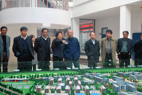 省人大副主任安焕晓一行在我院机电大楼沙盘模型前指导工作
