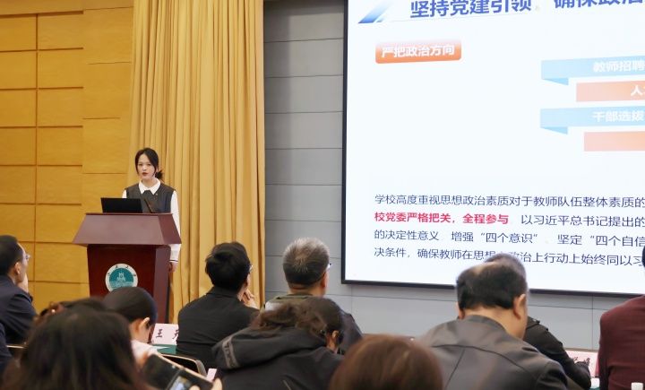 bat365从“坚持党建引领,确保政治过硬”“落实质量标准,建强教师队伍”“实施数字赋能,提升工作质效”等三方面作《党建引领 数字赋能 推动教师队伍高质量发展》的报告。