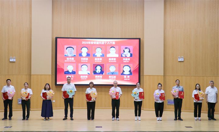 党委书记闫顺茂为2025年度师德先进个人代表、2025年度师德标兵代表颁奖