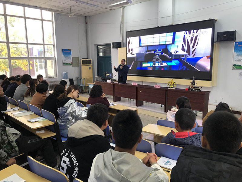 在巡回报告会中,崔老师以《人工智能与创新思维》为主题,围绕人工智能概念、人工智能分类、创新思维激发等方面,结合大量的案例视频、图文和人工智能机器人产品实物演示等,深入浅出的讲解了人工智能的发展与应用,并紧扣2019年乌镇世界互联网大会、5G商用启动、2019年上海进博会等近期人工智能领域热点事件,使大家充分了解了人工智能的发展现状和应用前景;同时,将创新思维激发与教育信息化、职业技能大赛、青少年科技创新大赛、机器人大赛等教学、竞赛活动相结合,通过互动交流、作品点评等,将逆向思维、发散思维、横向思维、形象思维等创新思维方法进行了形象阐述,并在人工智能植入和拓展应用方面进行了思考讨论。报告会生动传神,思想性、互动性、科普性强,在场师生备受鼓舞和启迪,对增强青少年的科技创新意识起到了良好的推动作用。