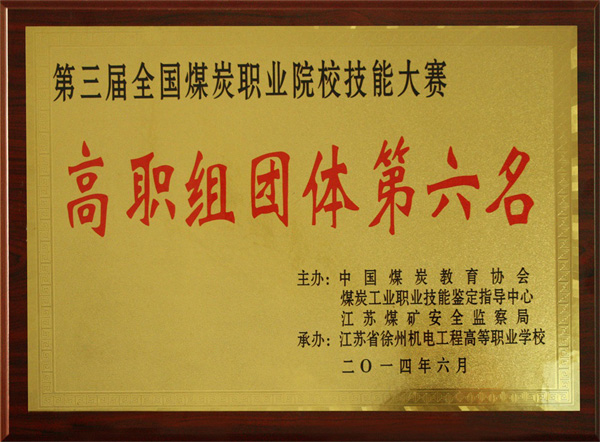 第三届全国煤炭职业院校技能大赛高职组团体第六名